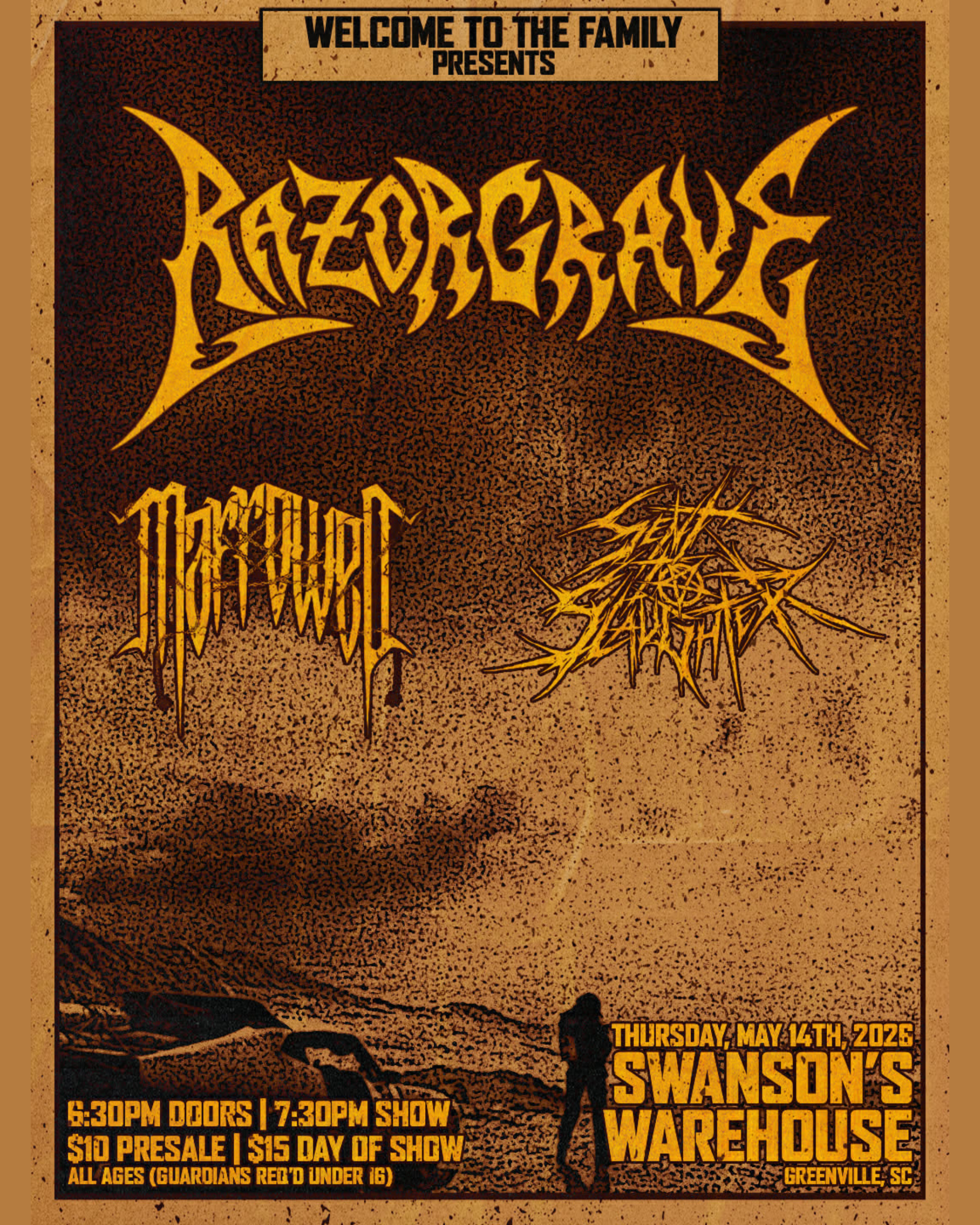 We got a three-band Thursday night metal show in Greenville this May as Maryland death metal band Marrowed stops through town with support from Razorgrave and Sent to Slaughter. Come early and check out three awesome bands; this’ll be a fun one!
